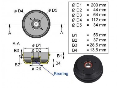 Tambur pentru BPW S2005-7, rulment 34mm